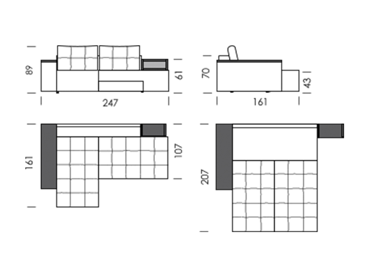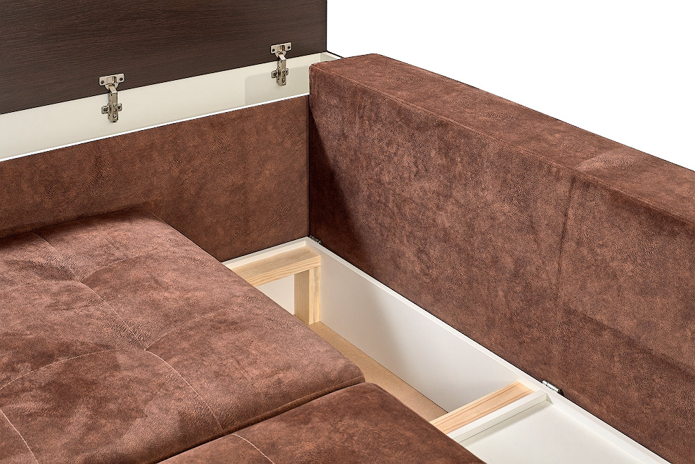 • Один подлокотник шириной ____ см, выполнен в виде тумбы, выполняющей роль дополнительного ящика для белья, с накладкой из ламинированного ДСП, проклеенного кромкой ПВХ 2 мм,